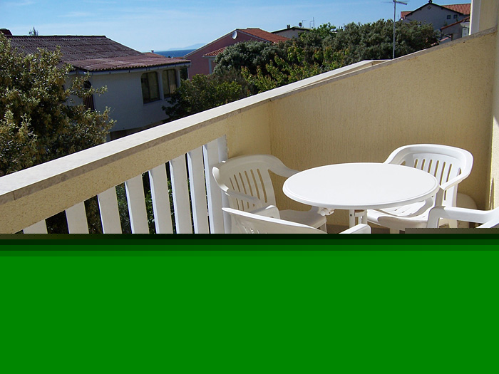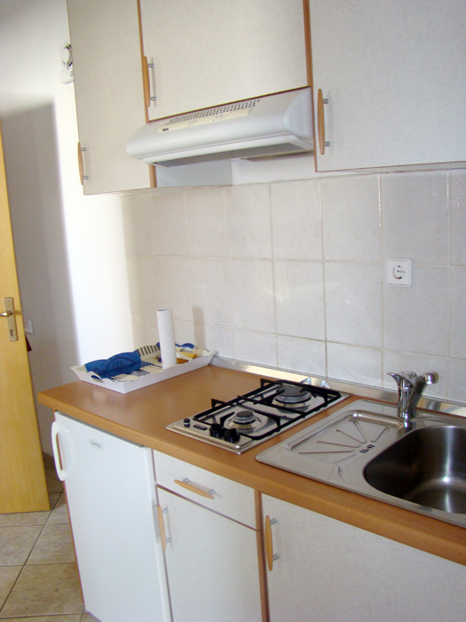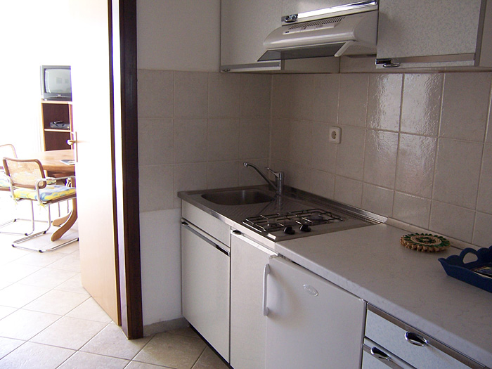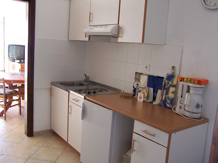 Svaki apartman je četverokrevetni (2+2) i sastoji se od spavaće sobe sa dvostrukim krevetom, kuhinje, dnevnog boravka sa još dva kreveta, kupaonice te terase sa pogledom na more.